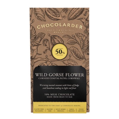 Chocolarder, Wild Gorse Flower, 50% Milk Chocolate Bar ingredients: