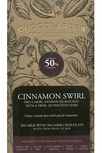 Chocolarder, Cinnamon Swirl, 50% Milk, 70% Dark Chocolate Bar