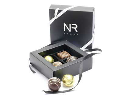 A ballotin-style gift box containing 4 high quality foiled chocolate discs, with a choice of either solid or filled chocolate. Ideal product for Corporate giveaways.