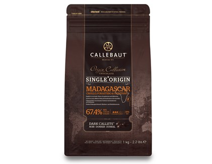 Single origin, 67% dark chocolate chips (callets) from Callebaut's Signature Collection, created with cocoa exclusively grown in Madagascar. This fruity dark chocolate couverture offers notes of acidulous red fruits with a touch of citrus.