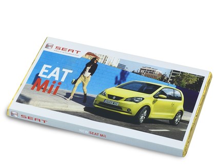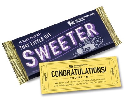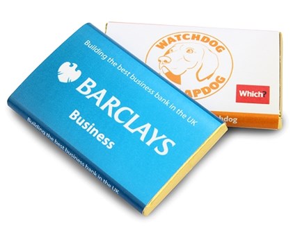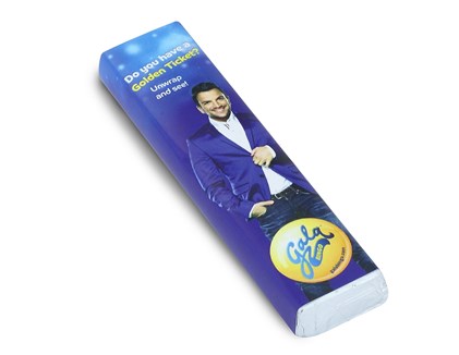 WHAT BETTER WAY TO CONVEY YOUR BRAND AND MESSAGE WITH THIS BEST SELLING CHOCOLATE BAR. A FULLY PERSONALISED WRAPPER & CONTAINING A GOLDEN TICKET! WITH YOUR CHOICE OF REWARD AND CALL TO ACTION. SUCH A FUN & HIGHLY EFFECTIVE PROMOTIONAL TOOL