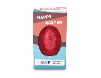 A personalised, boxed chocolate Easter egg. Printed in full colour on all sides. Containing a high quality milk chocolate Easter egg with an option for additional mini Easter eggs to be included. Ideal corporate chocolate gift.