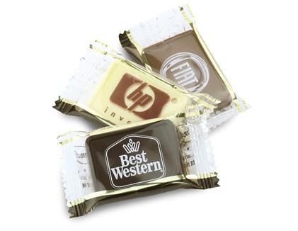 See your company logo or promotional message printed in extra fine detail directly onto high quality chocolate. An impressive and truly personalised chocolate option for corporate gifts or promotions. Whether you are requiring a low cost promotional chocolate giveaway or a luxury chocolate corporate gift - we offer it all, and are pleased to offer high quality and cost effective solutions whatever your budget and timescale. We have been creating fully personalised, printed chocolates for many years and for some of the world's biggest brands.