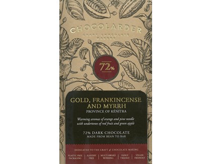 Chocolarder, Gold, Frankincense & Myrrh, 72% Dark Chocolate Bar